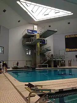 The Lejeune Hall was built in 1982 in honor of Lt. General John Archer Lejeune.[2] The facility came with an aquatic natatorium which has an Olympic size pool (25m × 50m) and a diving well. The diving platforms vary from 10 metres (33 ft), 7.5 metres (25 ft), and 5 metres (16 ft). The Natatorium also has a few diving boards.[3] In 2013, the Lejeune Hall underwent renovations where much of the flooring was redone and all the pools were also renovated with new tiles and new starting blocks.[4]