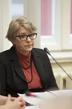 Lelde Stumbre (born 30 January 1952) is a Latvian dramatist and politician.[1] Author of many plays, she also wrote the screenplay to Lai tev labi klājas!, a 1995 TV series.[2] She was a candidate for the Latvian parliament in 2011, but finished as the first runner up for her party in the Riga voting region.[3] In 2014 Stumbre briefly served in the Saeima from 30 January[4] to 20 March[5] as a substitute for Einārs Cilinskis.
