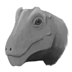 Lemurosaurus is a genus of extinct biarmosuchian therapsids from the Late Permian of South Africa.[1] The generic epithet Lemursaurus is a mix of Latin, lemures “ghosts, spirits”, and Greek, sauros, “lizard”. Lemurosaurus is easily identifiable by its prominent eye crests, and large eyes. The name Lemurosaurus pricei was coined by paleontologist Robert Broom in 1949, based on a single small crushed skull, measured at approximately 86 millimeters in length, found on the Dorsfontein farm in Graaff-Reinet.[2] To date, only two skulls of the Lemurosaurus have been discovered, so body size is unknown. The second larger, more intact, skull was found in 1974 by a team from the National Museum, Bloemfontein.[1]