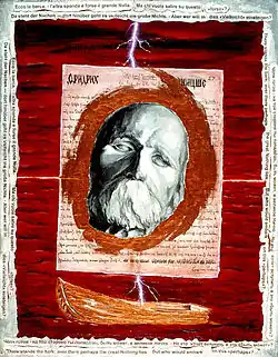 Hades is known for "Also Sprach Zarathustra", as well as two other paintings, which Russian nationalists deem Russophobian. In March 2008 a group of Russian nationalists took legal action against her, claiming her paintings provoke "racial and nationalistic hostility and hatred". The first work is called Welcome to Russia (1999). It was purchased by Igor Markin Museum of Contemporary Art,[4] the name of the other painting is The Chimera of the mysterious Russian soul (1996). It was exhibited only once, at the Second Moscow Biennale of contemporary art in 2005. The nationalists were offended by Hades' depiction of the Russian soul as a cartoonish creature with clichéd attributes of Russian everyday life — a bottle of vodka, a model of Sputnik — and by the crudely painted text in Welcome that indicts the Russian character as simultaneously overaggressive and alarmingly God-fearing.[5]