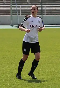 In the summer of 2012 she moved from the B-juniors at SF Sölderholz 1893 to SGS Essen in the youth department and played with the B-juniors in the newly founded Bundesliga West/Southwest.[5][6] Due to a reduced squad due to injury, Ostermeier was promoted from the U-17 to the Bundesliga squad at the beginning of 2013.[7]
