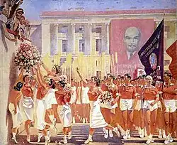 The Leningrad School of Painting (Russian: Ленинградская школа живописи) is a phenomenon that refers to a large group of painters who developed in Leningrad around the reformed Academy of Arts in 1930–1950 and was united by the Leningrad Union of Soviet Artists (1932–1991).[1][2]