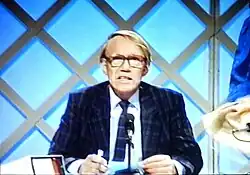 Swahn was producer for Riksronden and På minuten and music and entertainment programs on radio and television.[6] When he in the early 1970s came to television and became the host of the cafe program Halvsju he became nationally famous.[7] He was TV host for Riksronden, På minuten, Babbel, Halvsju, Gäster med gester (Give Us a Clue), Razzel and Blåsningen. He also presented New Year's concerts and the Nobel Banquet as well as Melodifestivalen 1986 together with Tommy Engstrand.