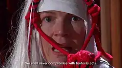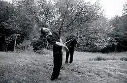 Originally commissioned in 1999 as a photo and text work for Paris' 9/9 revue d'art practique, it was presented in New York City as a performance at the College Art Association, Apex Art, Artists Talk on Art, Participant, Inc. (2005), and Location One (2007). Featured on Jochen Gerz' web-based anthology-of-art, it was exhibited at the Centre Pompidou and other museums. The photographic prints were installed at Castle Gallery, New Rochelle, New York; Klenova Castle, Klatovy, Czech Republic; and Trynarstarka Tower, Lublin, Poland.[16] A 2004 solo exhibition presented at the Slought Foundation, Philadelphia, PA, traveled to the Schick Art Gallery, Skidmore College, Saratoga Springs, NY and CUE Art Foundation, New York City, New York in 2007.[16][17][18] In 2008, Wesleyan University's Zilkha Gallery presented the multi-media installation "Lenore Malen and the New Society for Universal Harmony."[19][20][21][22]