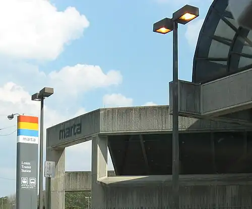Lenox is an at-grade subway station in Atlanta, Georgia, serving the Gold Line of the Metropolitan Atlanta Rapid Transit Authority. Located in the Buckhead district, it provides access to Lenox Square and Phipps Plaza, which are located on Peachtree Street across the street from one another, as well as the nearby neighborhoods of Lenox Park and Pine Hills. It also provides connecting bus service to Piedmont Park, Atlanta Botanical Garden, and Ansley Mall.