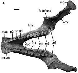 As part of this spike in research; Voss, Berning and Reiter published their examination of the upper Austrian seacow material in 2016, with the express goal to test Domning's synonymisation of H. christolli, H. abeli and H. pergense. The team concludes that the synonymy is justified and that there is no evidence for the three previously named taxa representing morphospecies. Given the dubious nature of Halitherium, the genus Lentiarenium was coined with L. cristolii continuing to serve as the type species. As the type species was described on a series of syntypes, Voss and colleagues chose OLL 2012/1, a complete mandible, as the genus' lectotype.[9]