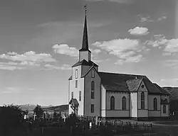 Lenvik Church (Norwegian: Lenvik kirke) is a parish church of the Church of Norway in Senja Municipality in Troms county, Norway. It is located in the village of Bjorelvnes, along the Gisundet strait. It is one of the churches in the Lenvik parish which is part of the Senja prosti (deanery) in the Diocese of Nord-Hålogaland. The white, wooden church was built in a cruciform style in 1879 using plans drawn up by the architect Anker and has a seating capacity of about 250 people.[1][2][3]