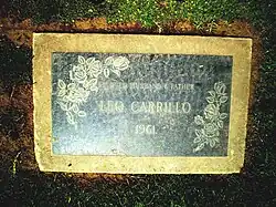 Leo Carrillo died of cancer on September 10, 1961, at the age of 81,[19] and is interred at Santa Monica's Woodlawn Memorial Cemetery.
