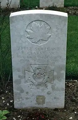 Clarke was taken to No. 1 General Hospital at Étretat but died on 19 October. He is buried in Plot II, Row C, Grave 3A, in Etretat Churchyard,[3] 16 miles north of Le Havre, France. According to a contemporary newspaper article, shortly before his death he wrote to his parents, stating: "I don't care so much for the Victoria Cross as getting home for a couple of months."
