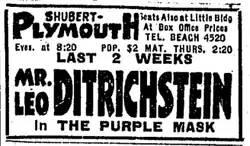 Advertisement for Ditrichstein's appearance at Plymouth Theatre (Boston), 1921