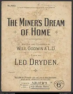 Will Godwin and Leo Dryden wrote The Miner's Dream of Home in 1891. Leo Dryden sang it in the music halls for many years and recorded it on 27 August 1898 on a Berliner disc E2013[6]