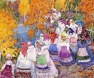 Leon Schulman Gaspard (1 or 2 October 1883 [other sources provide 2 March 1882] - 21 February 1964)[1] was a Russian-born painter, known for his paintings of indigenous cultures and folk traditions. He tended to paint scenes with throngs of people, and his favorite locations were in small towns in Belarus, Russia, Asia, and Taos, New Mexico.[2] He spent his youth in Russia and later studied in Paris, where he became a well-respected painter. He moved with his wife, Evlyn Gasper, to the United States. They eventually settled in Taos, New Mexico, though he continued to devote much of his time to traveling to paint in remote locations.[3][4]