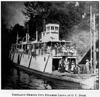 The steamship Leona operated from 1899 to 1912 on the Willamette River in the U.S. state of Oregon.[3] This vessel was original launched under the name McMinnville in 1899, and should not be confused with an earlier vessel named McMinnville, which ran on the Willamette River from 1877 to 1881.[2]