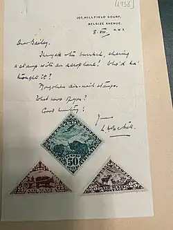 His tour of command was shortened due to a heart condition: he was invalided to England in August 1924. He came on his own and his postal address then was given as 'c/o Lloyds Bank, Pall Mall'.[24] On 14 September 1926 he was placed on the Unemployed List on completion of his command.[25]