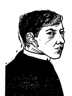 Leonard Baskin (August 15, 1922 – June 3, 2000) was an American sculptor, draughtsman and graphic artist, as well as founder of the Gehenna Press (1942–2000). One of America's first fine arts presses, it went on to become "one of the most important and comprehensive art presses of the world", often featuring the work of poets, such as Sylvia Plath, Ted Hughes, Anthony Hecht, and James Baldwin side by side with Baskin's bold, stark, energetic and often dramatic black-and-white prints.[1] Called a "Sculptor of Stark Memorials" by the New York Times, Baskin is also known for his wood, limestone, bronze, and large-scale woodblock prints, which ranged from naturalistic to fanciful, and were frequently grotesque, featuring bloated figures or humans merging with animals.[2] "His monumental bronze sculpture, The Funeral Cortege, graces the Franklin Delano Roosevelt Memorial in Washington, D.C."[3]