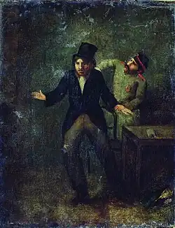 In 1855, Ramazanov obtained him a place at the Moscow School of Painting, Sculpture and Architecture, where he worked until 1860 while studying with Apollon Mokritsky.[2] From 1861 to 1866, he became a "volunteer apprentice" at the Imperial Academy of Arts in Saint Petersburg. While there, he studied the Dutch Masters at the Hermitage and was influenced by the works of Pavel Fedotov. He abandoned his studies after being named an "Artist, Third-Degree".[1]