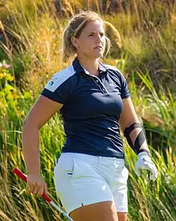 Leonie Harm (born 1997) is a German professional golfer. In 2018, Harm was the first golfer from Germany to win the British Ladies Amateur Golf Championship in the event's history. Her British Amateur win gave her exemptions to multiple LPGA Tour events including the 2018 Women's British Open and 2019 U.S. Women's Open. In team events, Harm played at the European Ladies' Team Championship in 2016, 2017 and 2018 while also appearing at the 2018 Espirito Santo Trophy.