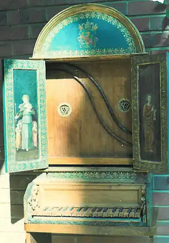 - ^ This is evidently the instrument shown in the image at the start of this article. The coat of arms displayed at the top of the instrument is that of Pope Sixtus V, who is mentioned as a possible former owner in Franciolini's catalog description (Ripin, p. 67). Franciolini's own sales photograph of the instrument is printed on p. 99 of Ripin, and Ripin's commentary on p. 155.