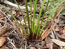Lepidosperma viscidum, the sticky saw sedge, is a grass-like plant found in south eastern Australia. Usually seen in heath and woodland on sandy and rocky sites, it may grow to 60 centimetres high.[1] This is one of the many plants first published by Robert Brown with the type known as "(M.) v.v." appearing in his Prodromus Florae Novae Hollandiae et Insulae Van Diemen in 1810. The specific epithet viscidum is derived from the Latin with a meaning of "sticky", which refers to the sticky resin from the base and margins of the leaves and stem margins. On drying, the resin turns a red colour.[2]