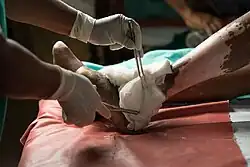 Funding these international programs has always been a priority, so these projects "have the best Australia can give", to use the phrase of its early advocate, Bishop George Chambers.[59] For healthcare professionals in Australia's Christian community, the mission has also been a conduit for service overseas.[60] In this way, many Australians have provided patients with physiotherapy, reconstructive surgery, and other forms of rehabilitation.[61][62] This aspect of TLMA's work addresses the physical and psychological impacts of leprosy, enabling people to rebuild their lives.[63] In this regard, the charity has been described as one of the earliest disability inclusion organisations.[64] The organisation is shaped by its Christian faith, and so addresses leprosy as both a medical and social issue.[51][65]
