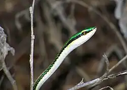 Leptodrymus is a genus of snake in the family Colubridae that contains the sole species Leptodrymus pulcherrimus.[2] It is known as the striped lowland snake[1][3] or green-headed racer.[4]