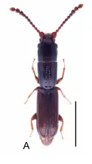 Adults reach a length of about 2.3–2.7 mm. It is the most unique species within the genus and can be easily recognized by two rows of coarse punctures on the pronotum.[1]