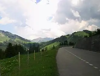 The north side is substantially flatter, passing on the south shore of the Lac de l'Hongrin. This part of the road is open to private motorized vehicles only in summer. Near La Lécherette, the road meets the pass road that crosses the Col des Mosses.