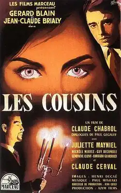 Les Cousins is a 1959 French New Wave drama film directed by Claude Chabrol. It tells a story about two cousins, the decadent Paul, played by Jean-Claude Brialy, and the naïve Charles, played by Gérard Blain. The film won the Golden Bear at the 9th Berlin International Film Festival.[1]