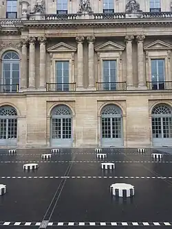 Les Deux Plateaux, more commonly known as the Colonnes de Buren, is an art installation created by the French artist Daniel Buren in 1985–1986. It is located in the inner courtyard (Cour d'Honneur) of the Palais Royal in Paris, France.