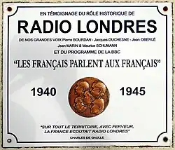 - ^ Jacques Pessis (2014). Albin Michel (ed.). Radio Londres, la guerre en direct. p. 163.