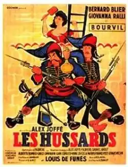 Les Hussards (English: Cavalrymen), is a French comedy film from 1955, directed by Alex Joffé, written by Gabriel Arout, starring Bernard Blier, Giovanna Ralli, Bourvil, and with Georges Wilson, Virna Lisi, Louis de Funès playing supporting roles.[1] The film is known under the titles "Cavalrymen" (international English title), "Les hussards" (Belgium French title), "De husaren" (Belgium Flemish title), "La piccola guerra" (Italy), "Huszárok" (Hungary).