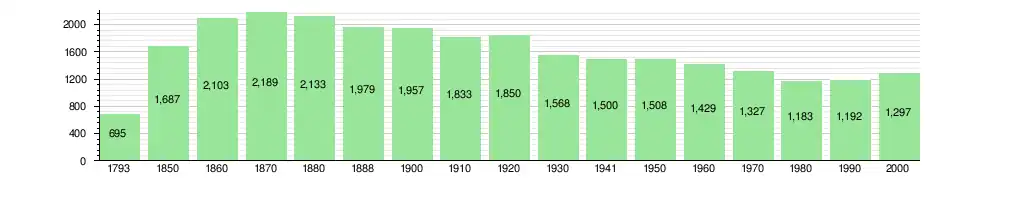 Les Ponts-de-Martel has a population (as of December 2020) of 1,230.[7] As of 2008, 6.5% of the population are resident foreign nationals.[8] Over the last 10 years (2000–2010) the population has changed at a rate of 1%. It has changed at a rate of 0.2% due to migration and at a rate of 1.1% due to births and deaths.[9]