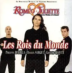 "Les Rois du monde" is a 2000 song performed by Philippe d'Avilla, Damien Sargue and Grégori Baquet. It was the second single from the French musical Roméo et Juliette, de la Haine à l'Amour, featuring as the fourth track on the album of the same name. Released in July 2000, the single achieved a huge success in France and Belgium, topping the charts for many months.