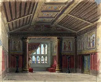 - ^ Given in a prologue and 5 acts, but comprising Acts 3–5 of the complete opera. Cast from the 1864 libretto, p. 2. Characters only appearing in Acts 1 or 2 of the complete opera are marked with a dash.