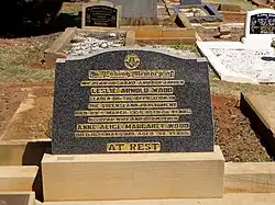 Wood died of a heart attack at his home in March 1958. He was given a state funeral,[3] the first time it was accorded to an opposition leader.[1] The funeral service was packed (Wood had been an exceptionally popular parliamentarian, esteemed even by his political opponents) and hundreds of people stood outside the church to pay their last respects. There were 140 cars in the funeral cortege[1] as it made its way to the Drayton and Toowoomba Cemetery for his burial.[4]