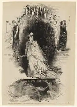 Les Érinnyes (The Erinyes) is a French language verse drama written by Leconte de Lisle and premièred at the Théâtre de l'Odéon in 1873. It is in the style of a Greek tragedy, in two acts: Klytaimnestra (Clytemnestra) and Orestès (Orestes). It was an adaptation of the first two parts of Aeschylus' Oresteia (Agamemnon and Libation Bearers).[1] The text was printed in de Lisle's collection Poèmes Tragiques.