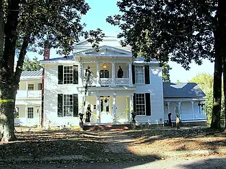 The original section of the house was built about 1840, and is a two-story, Greek Revival-style frame dwelling. The front facade features two-tier, pedimented Doric order entrance portico. Additions and modifications were made to house about 1876 and 1900, and includes Colonial Revival style design elements. Also on the property is a contributing family cemetery.[2]