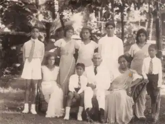 Goonewardene met Vivienne Goonatilleka, who was the niece of two of the leading leftist politicians in Ceylon, at a political meeting.[26][27] Her uncle Philip Gunawardena was the "Father of Socialism" in Ceylon, and another uncle, Robert Gunawardena, was a prominent Sri Lankan politician and diplomat.[28] Vivienne's father, Don Alanson Goonatilleka, was a pro-monarchy conservative who believed in the continuous British governing of Ceylon.[26] Vivienne was educated at Musaeus College in Ceylon and was initially drawn to politics through the Suriya-Mal Movement in 1933, when nationalist anti-imperialists initiated the sale of the native Suriya (Portia tree) flowers as an alternative to the British colonial-symbolizing poppies.[29][30] The movement had the bold slogan of "against slavery and poverty and for freedom and prosperity". As head girl she recruited her entire school to this cause.[31]
