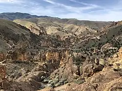 Leslie Gulch is a canyon in Malheur County, Oregon, United States. It is on the east side of Owyhee Lake, a reservoir on the Owyhee River. Its abundant and striking rock formations are made of tuff.