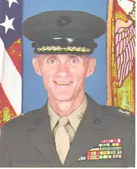 On August 16, 1990, he assumed command of the 10th Marine Regiment and participated in Operations Desert Shield and Desert Storm. While serving in this capacity, he was selected in December 1991 for promotion to brigadier general. He was advanced to that grade on May 1, 1992, and assumed his duties as Assistant Deputy Chief of Staff for Manpower and Reserve Affairs, (Manpower Plans & Policy), Headquarters Marine Corps, Washington, D.C.