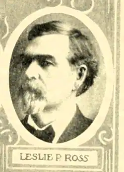 Leslie P. Ross was born on February 4, 1863, in Camden, Arkansas. His father was a confederate veteran and county sheriff. In 1890, he was elected to the Oklahoma Territorial Senate. He was elected the first Mayor of Lawton on October 24, 1901.[1] He was later elected to the 2nd Oklahoma Legislature.[2] He was a Democratic candidate in the 1910 Oklahoma gubernatorial election, but lost the primary election.[3] He died March 9, 1944.[2]
