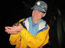 ![]() Rissler with Kobayashi's horned frog in Borneo, 2012. | |