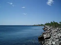 In Toronto, it begins at Lake Ontario at the foot of the Leslie Street Spit, so named because this is the most southerly point of Leslie Street. Just north at Lake Shore Blvd. East was the former eastern terminus of the Gardiner Expressway. Leslie Street continues north to railway tracks north of Gerrard Street East, where the first segment ends. Donlands Avenue, which runs from the north side of the railway tracks to north of O'Connor Drive, follows Leslie's alignment and was originally another segment of it.[5]