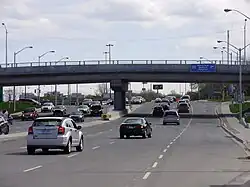 | Major junctions | Lake Shore Boulevard Queen Street Dundas Street Gerrard Street —Road breaks— (Intervening minor segment) —Road breaks— Eglinton Avenue Lawrence Avenue Sheppard Avenue Finch Avenue Steeles Avenue —Road breaks— John Street | ||||||