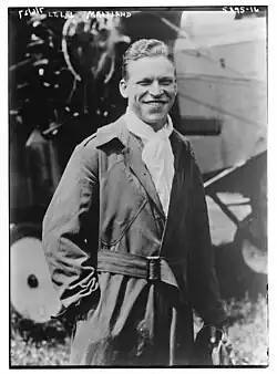 During the 1920s, Maitland competed for the Air Service and its Air Corps successor in air races and pioneering flights as part of the service's program of generating favorable publicity.[3] While Operations Officer for Col. Augustine Warner Robins at the Fairfield Air Intermediate Depot (FAID) in October 1922, he was part of the Army team at the National Air Races held that year at Selfridge Field, Michigan.[4] On October 14, he reputedly became the first U.S. pilot to fly faster than 200 mph (320 km/h) and received a letter of congratulations from Orville Wright.[5] Flying a Curtiss R-6 racer over a 50-kilometer (31-mile) course, Maitland finished second in the Pulitzer Trophy race, behind Army test pilot Lt. Russell Maughan but ahead of four Navy and eight Army racers, averaging 198.8 mph (319.9 km/h) and reporting brief blackouts during the tight pylon turns.[6] On March 29, 1923, he set a world's absolute speed record of 236.58 mph (380.74 km/h) over one kilometer in the R-6, but the record was disqualified because he failed to maintain level flight.[7][n 1] However he broke his own record in October when he flew at a recorded speed of 244.94 mph (394.19 kmh), also in the R-6.[2]