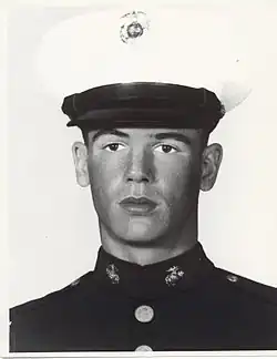 He left high school to enlist in the U.S. Marine Corps Reserve in Chicago on September 30, 1966. He subsequently enlisted in the Regular Marine Corps on January 23, 1967.