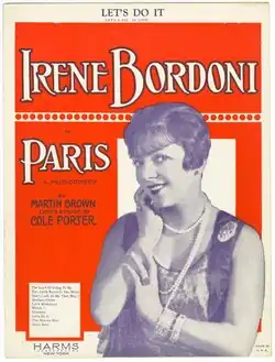 "Let's Do It, Let's Fall in Love" is a popular song written in 1928 by Cole Porter. It was introduced in Porter's first Broadway success, the musical Paris (1928) by French chanteuse Irène Bordoni, for whom Porter had written the musical as a starring vehicle.[1]