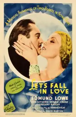 Let's Fall in Love is a 1933 American pre-Code romantic musical film starring Edmund Lowe and Ann Sothern. Released by Columbia Pictures, the film was directed by David Burton and written by Herbert Fields.