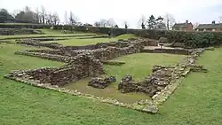 The foundations of the last mansio built at the site, and its associated bath-house, were uncovered by archaeologists in 1912–13.[11] The rooms of both the mansio and bath-house were emptied and the stone foundations were exposed. This work left, in some lower stratified levels, traces of the two earlier wooden mansiones.[11]