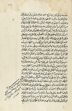 The eastern tradition of the Epistola stems from a Syriac translation of the Romance.[11] Not all derivative versions retain the letter, however. It is absent in the Armenian.[12] Two translations from Syriac into Arabic were made in the ninth century. Although one of these translations is lost, its version of the Epistola was incorporated into a separate, popular romance about Alexander, the Sīrat al-Iskandar. Material derived from the Arabic Epistola can also be found, no longer in the form of a letter, in the Persian Shahnameh and Iskandarnameh. The Epistola or material from it entered Ethiopic and Turkish through translations of the Romance and Iskandarnameh, respectively.[11]